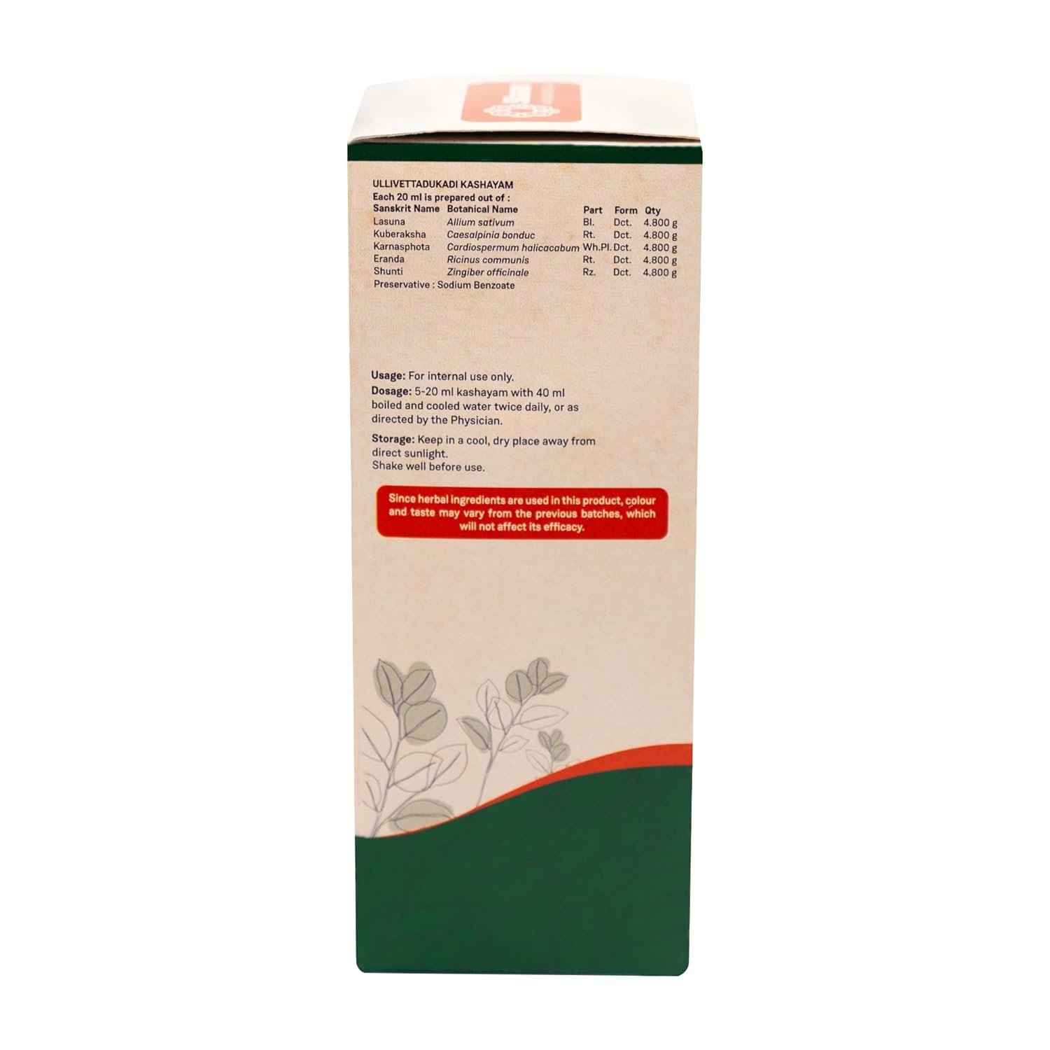 Ulli’ and ‘Vettuduku’ are the Sanskrit names of Garlic and Fever nut. Ullivettudukadi Kashayam is a traditional formula mentioned in the context of management of abscesses, abnormal tissue growth, and herniation. It is seen to have a specific action in the pelvic and groin region. ‘Kashaya’ or herbal decoctions harness the healing properties of herbs and roots in a mild and easily absorbable water base.