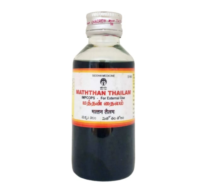 Maththan Thailam is an Ayurvedic herbal oil used to treat skin disorders. It is helpful for people who have skin issues like eczema, inflammation, redness of the skin, and many other such problems. This herbal oil is helpful to lower the swollen muscles and reddening of the skin as well. Maththan Thailam is also helpful to cure psoriasis. Dry, rough, itchy, and irritated skin is also healed with the help of this Ayurvedic oil. Simply massaging the oil on the irritated skin helps one to heal in a natural and herbal way.