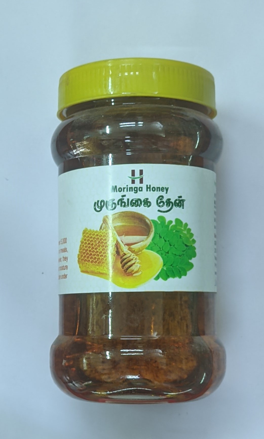 This super light colour and mild flavoured honey is collected by our Bees from the Moringa orchards .