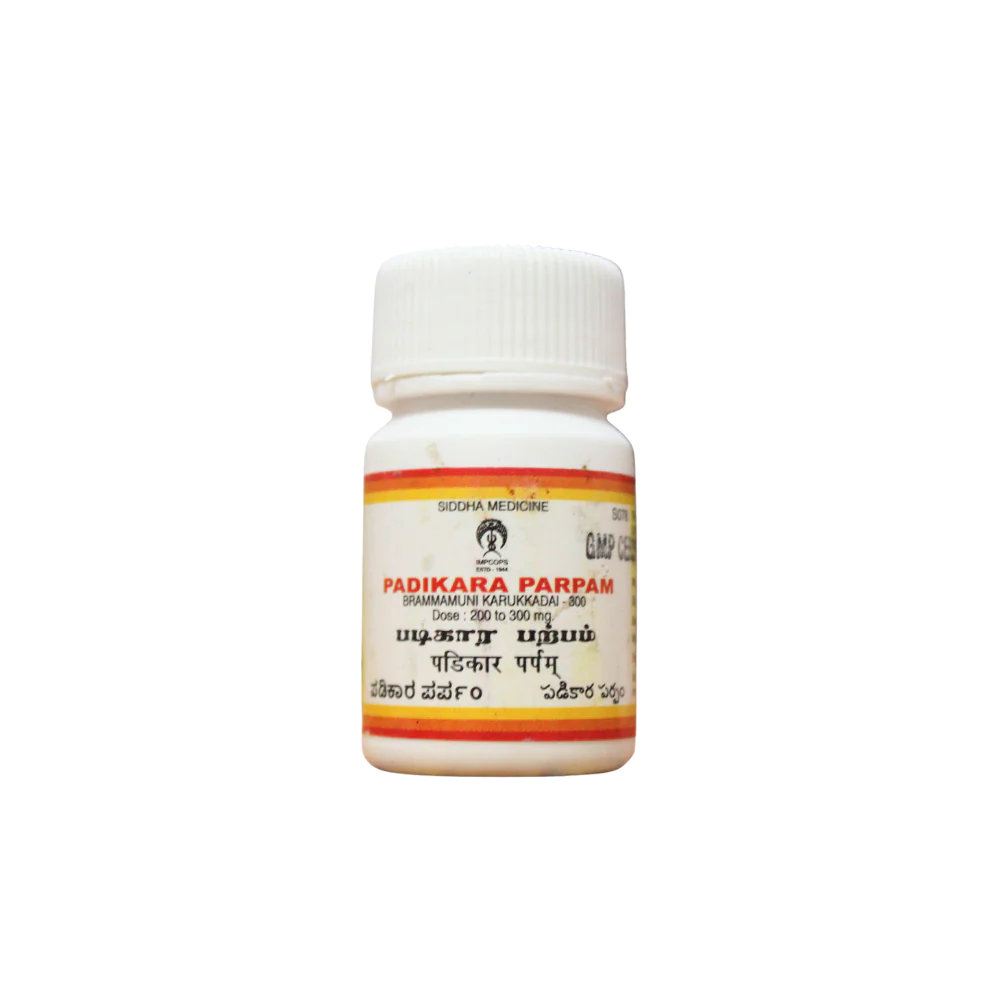 Padigara ParpamPadigara parpam is a classical Siddha medicine in parpam, it is used in the treatment of genitourinary tract disorders,Padigaram [potassium aluminum sulfate] it is useful in abdominal pain, pneumonia, low back pain,dry cough, chronic bronchial diseases, hematemesis, menorrhagia, leucoderma, etc., INDICATIONS;Its cures Neerkattu[ retention of urine/anurea],its cures Neer tharai erivu[ painful micturition],its cures Neeradaippu[ urinary obstructions],its cures urinary obstructions due to the over growth of tissue in sathai adaipu[ urinary passage obstructions], its cures Neertharai azharchi[ inflammations of the urogential organs],its cures raththa moothiram[ haematurea], its cures vettai[ gonorrhoea], its cures vaaipun[ stomatitis],its cures soothaga soolai[ dysmenorrhoea],andits cures perum padu [ menorrhagia], etc.,DOSAGE AND ADJUVANTS;200 to 300 mg with ghee or honey twice a day after food. can also be administered along with Aerva plant juice [sirupeelai samoola saaru], Astera cantha plant juice [ neermulli samoola saaru], or small Tribulus juice[ siru nerunjil samoola saaru].